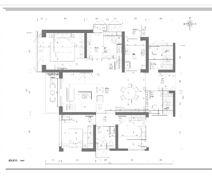 原始戶型公共區(qū)域散亂零碎,通過分析屋主的空間功能需求及用途之后,進行重新解構改造。首先將兩處面積較大的生活陽臺納入公共空間,在擴大客餐廳面積后,又獨立出一間多功能空間。整合后的戶型變得方正、整齊,視野開闊并富有多元的互動性。其次為空間的基調注入經(jīng)典的黑白灰,鮮明的對比與自然的視感過渡,在層次漸進中渲染出簡約、現(xiàn)代的精奢之感。最后施以木色點綴,與空間互相融合,增添柔和溫度