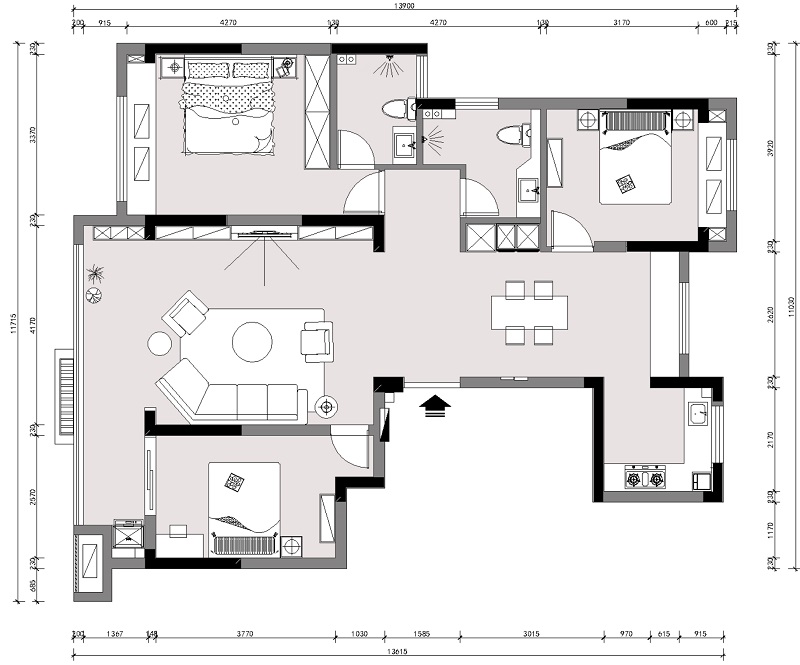 晟輝公園府-125平方-現(xiàn)代風格效果圖